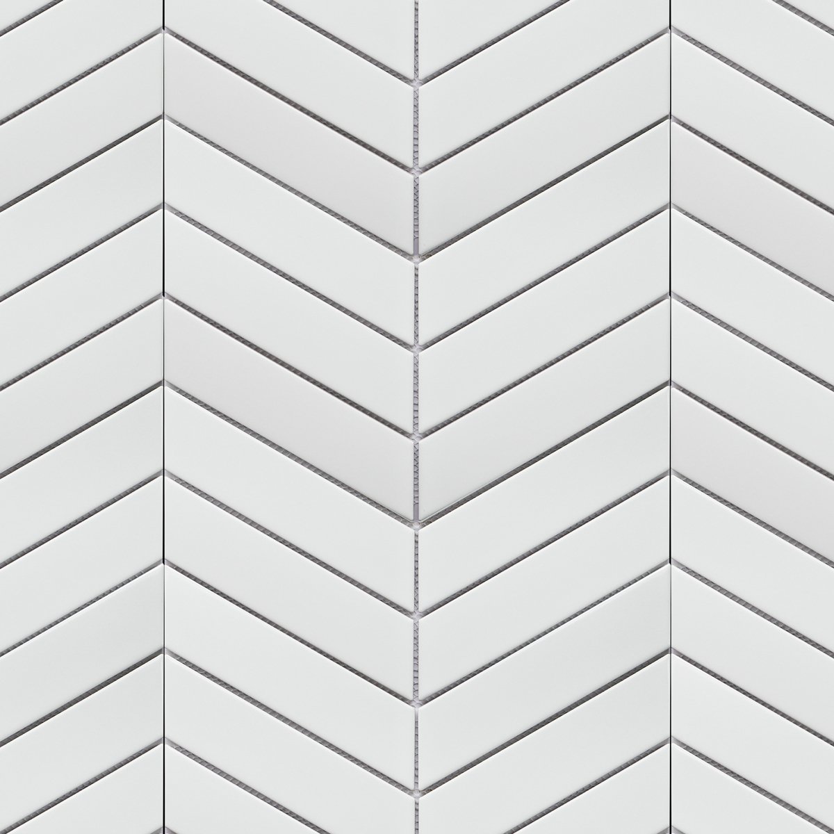 Classica Chevron White Matt (180x52mm) is a glazed chevron porcelain mosaic in classic black. It offers endless design opportunities and can be used in both floor and wall installations.