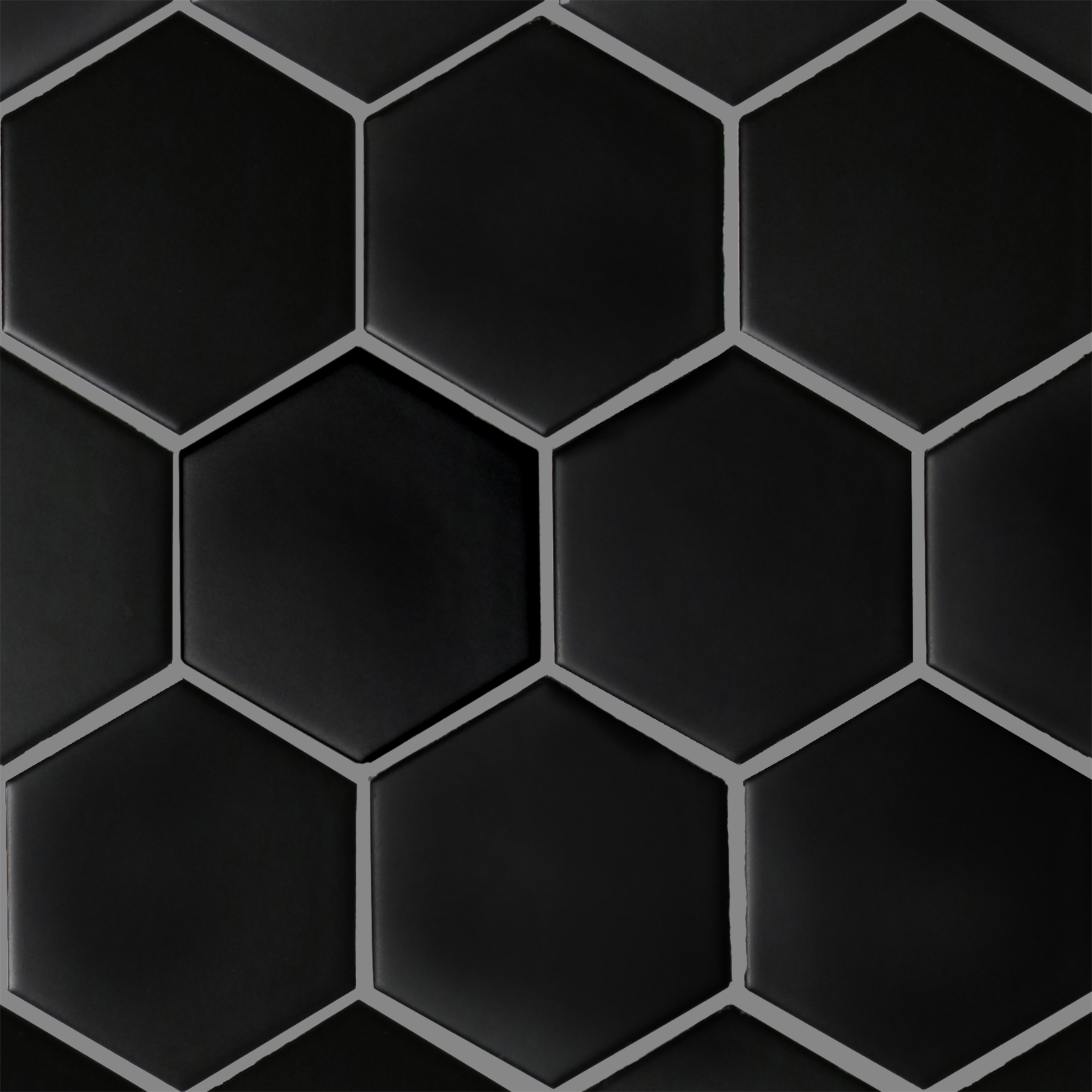 Classica Hexagon Black Matt (95mm) is a glazed hexagon porcelain mosaic in classic black. It offers endless design opportunities and can be used in both floor and wall installations.