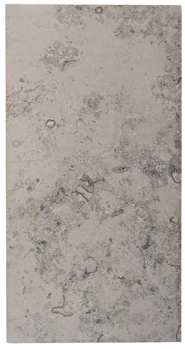 Cross-cut Jura stone is produced by cutting the block perpendicular to its natural bedding layers, rather than parallel to them. This slicing method reveals the full natural character of the limestone, including its fossil content, cloud-like patterning, tonal variations, and subtle mineral blooms. In contrast to the linear appearance of vein-cut material, cross-cut Jura displays a soft, organic, more random aesthetic, where ancient fossils and natural textures become prominent features. This is the form most commonly associated with traditional Jura limestone and is often chosen for its expressive natural beauty. Cross-cut stone generally provides good stability and a balanced appearance for tiles, slabs, and architectural components. Cross-Cut is available in all the regular surface options.