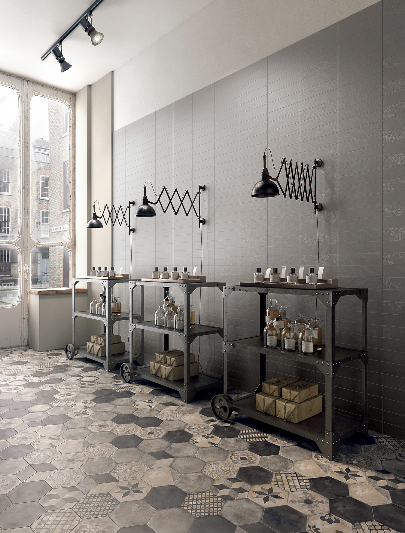 1741 Grigio is a warm beige tone with a taste of the past; inspired by the hand-made encaustic tiles from the mid-19th century.