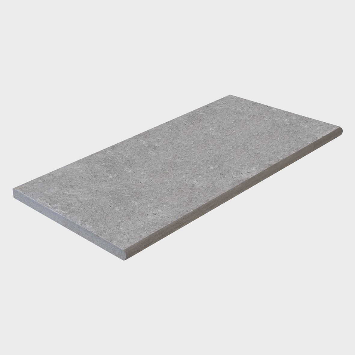 A striking, industrial-themed porcelain bullnose, paired perfectly with its paver counterpart. Cassero Grey’s raw shuttered concrete effect and natural texture is unmistakable and on-trend.