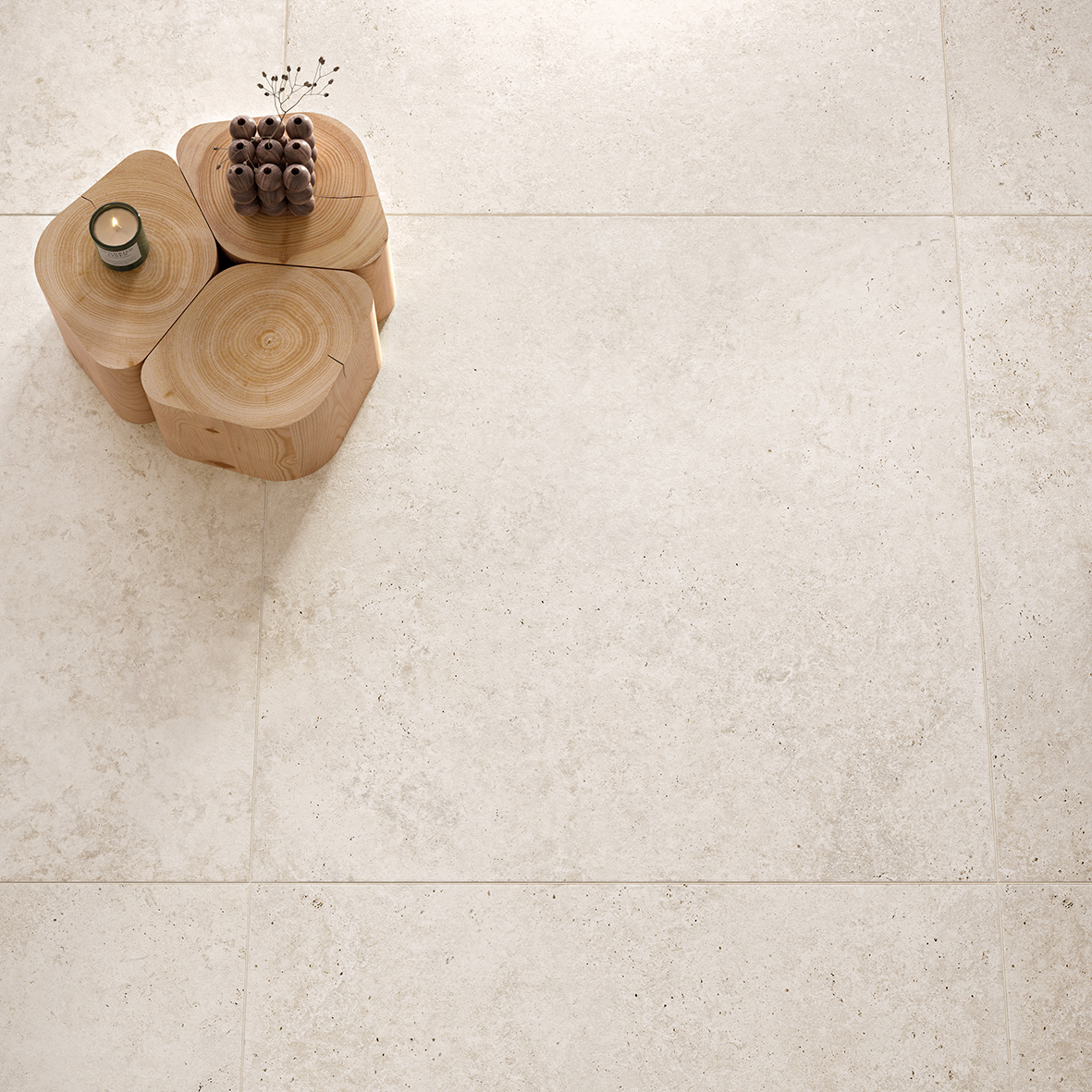 An ivory porcelain stoneware tile inspired by the finest natural travertine and reinterpreted with modern taste, texture, and elegant appeal. Combining natural aesthetics with strength and practicality.