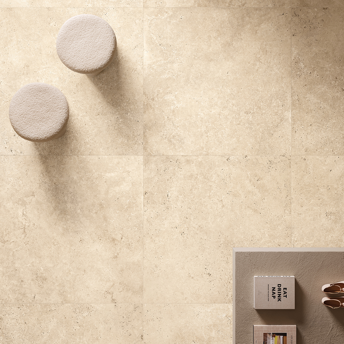 A beige porcelain stoneware tile inspired by the finest natural travertine and reinterpreted with modern taste, texture, and elegant appeal. Combining natural aesthetics with strength and practicality.
